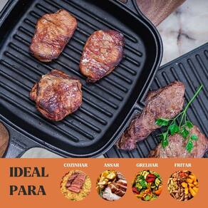 A Frigideira Grill Quadrada Panela Mineira é ideal para grelhar carnes, frangos, legumes e hambúrgueres com marcação profissional e sabor acentuado. O ferro fundido puro oferece desempenho superior, garantindo alta retenção de calor e distribuição uniforme para um preparo perfeito. A peça conta com cabo e alça de ferro para máxima resistência e segurança. Diferente de panelas comuns, as peças de ferro fundido Panela Mineira são livres de toxinas, duram por gerações e liberam ferro naturalmente. Ideal para bares, hotéis, pousadas, restaurantes, buffets e também para o uso diário em casa. Produto com garantia de 90 dias do fabricante.