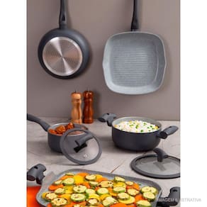 A Frigideira Grill Hércules com Revestimento Cerâmico e Indução 31 cm Cinza foi projetada para trazer praticidade, elegância e qualidade ao seu dia a dia. Fabricada em alumínio com revestimento cerâmico antiaderente, ela proporciona cozimento uniforme e eficiente, sem agredir a saúde ou a natureza. Ideal para grelhados suculentos e perfeitos, conta com cabos soft touch que não esquentam e podem ir ao forno. Seu design exclusivo garante durabilidade e alta resistência, sendo compatível com fogões convencionais e de indução.