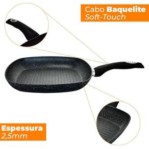 Produzida com alumínio robusto de 2,5mm espessura e fundo canelado, a frigideira otimizará o preparo de seus alimentos, pois a temperatura é dissipada de maneira uniforme evitando que sua comida queime facilmente.