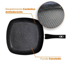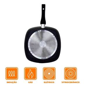 Frigideira Grill De Indução Antiaderente Cerâmica Bistequeira Preto 28Cm - Casambiente Al193 Bistequeira Revestimento Cerâmico de Indução 28cm - Casambiente