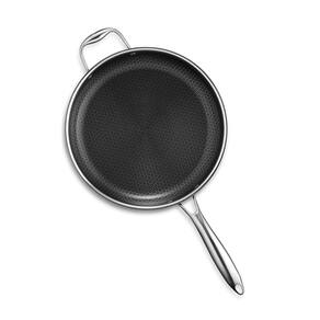 HexClad Frigideira híbrida antiaderente de 4,5 litros com tampa de vidro temperado, alça para ficar fria, adequada para lava-louças, segura no forno até 482 °C, pronta para indução, compatível com