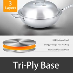 DISTRIBUIÇÃO PERFEITA DE CALOR — A base de 3 camadas não apenas aquece rapidamente e espalha o calor uniformemente, mas também elimina pontos quentes. COMPATÍVEL COM INDUÇÃO — Versátil. Compatível com fogão de indução, gás, elétrico, cerâmico e halógeno. AÇO INOXIDÁVEL - Feito com aço inoxidável 304 de qualidade alimentar, perfeito para resistência à corrosão. A superfície de cozimento de aço inoxidável não descolorirá, não reagirá com os alimentos nem alterará os sabores. ALÇAS DE AÇO INOXIDÁVEL — Alças confortáveis para manter a calma oferecem máxima manobrabilidade. MEDIDAS: 12,6" de diâmetro x 3,7" de altura (sem tampa).