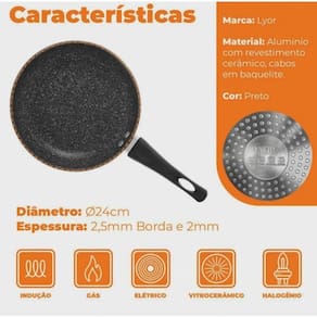 Frigideira de Indução em Alumínio com Revestimento Cerâmico Granilite Preta 24cm - Lyor