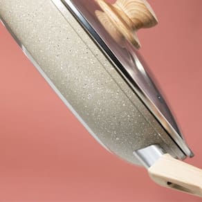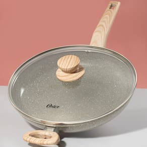 Com um acabamento marmorizado na cor cinza dust, essa frigideira da linha Marble Edition da Oster é um complemento perfeito para sua cozinha, trazendo beleza e sofisticação.