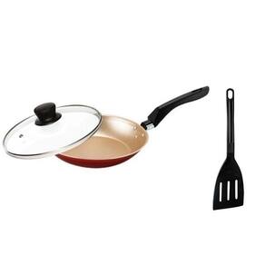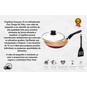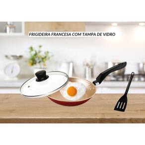Frigideira de ovo antiaderente teflon pequena com tampa de vidro 16 cm cor cereja e bege Frigideira de ovo antiaderente teflon pequena com tampa de vidro temperado 16 cm Marca: Heraa