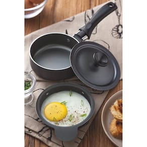 Alumínio com revestimento interno e externo de antiaderente Starflon T1. Cabo e pegador de baquelite antitérmico.