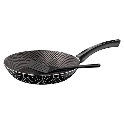 Com Frigideira Paris em Alumínio 30 cm com EspátulaTramontina você irá preparar suas refeições com mais praticidade e vai deixá-las ainda mais gostosas! Ela é produzida em alumínio com espessura de 1,8 milímetros e revestimento interno de antiaderente Starflon Max, características que juntas, proporcionam um cozimento rápido e uniforme dos alimentos, evitam que eles grudem em sua superfície e a tornam mais fácil de limpar. A peça conta com revestimento externo siliconado na cor preta e tem seu cabo em baquelite antitérmico, material que não aquece e oferece conforto durante o manuseio. É uma frigideira que permite preparos rápidos, facilitando seu dia a dia!Corpo de alumínio com espessura de 2,3 mm que proporciona cozimento rápido e uniforme. Revestimento interno de antiaderente Starflon Max que não gruda, é fácil de limpar, mais durável e não é prejudicial à saúde, pois é livre de PFOA. Revestimento externo siliconado. Cabo de baquelite antitérmico que oferece segurança durante o manuseio. Espátula de Nylon que permite uso em temperaturas de até 180 °C e cabo com furo passante possibilitando que seja pendurado na sua cozinha.Código de Barras:7891112297890Referência: 28508630 Marca: TramontinaComposição/Material: Alumínio Dimensões aproximadas do produto (cm) : 8,5x30,4x48,8 cmPeso aproximado do produto (kg): 0.785 kg