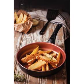 A sua cozinha vai ficar muito mais prática e funcional, com a frigideira reta Tramontina Vermont em alumínio com revestimento interno cobre antiaderente Starflon Max com cabo baquelite grafite 24 centímetros de diâmetro 2 litros. Desenvolvida em alumínio com revestimento interno e externo em Starflon Max, ela evita que os alimentos grudem em sua superfície, proporciona maior facilidade na limpeza e não é prejudicial a saúde. Seu cabo é em baquelite antitérmico, reduz a propagação de calor e garante uma manuseio muito mais seguro e confortável. Além disso, vem acompanhada de uma espátula de nylon ideal para utilização no preparo das receitas, pois não risca ou arranha seu antiaderente. Muito prática, ela pode ir à máquina de lavar louças e ser utilizada em fogões a gás, elétricos e vitrocerâmicos (resistência elétrica).