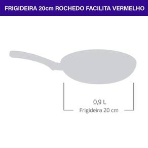 Características: Marca: Rochedo Modelo: Facilita Tipo: Frigideira Diâmetro da panela: 20 cm Material: Alumínio Revestimento interno: Antiaderente Cabo: 16,4 cm pode ser levado a: Pode ir em todos os tipos de fogões, exceto indução.