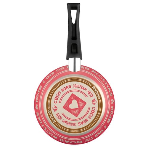 Sua parte externa é toda decorada com mensagem estimulante e serve para decorar sua cozinha, assim, possui revestimento antiaderente externo, muito mais fácil de limpar e resistente às manchas causadas pela chama do fogão. Leve e fácil de manusear, o fundo durabase evita deformação, não desliza no fogão, muito mais seguro.