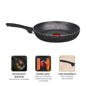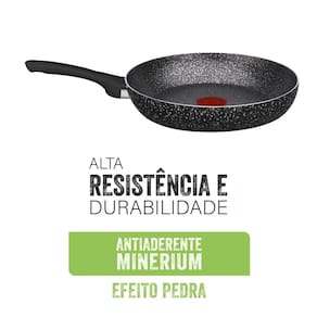Antiaderente Minerium Efeito PedraThermo-sinal: Muda de cor indicando o momento ideal para selar seu alimentoCabos Ergonômicos: Mais segurança e confortoDecoração resistente: não mancha com a chama do fogão, garantindo resistência e durabilidade de sua corBase Limpa Fácil: Possibilita uma fácil limpeza pois não mancha e não grudaEspessura de 1,7mm, ideal para distribuir o calor uniformemente para um melhor cozimentoAlém de contar com a qualidade da marca Rochedo, presente no Brasil há mais de 100 anos, a Frigideira Rochedo Stone Pro 26cm é livre de substâncias tóxicas (PFOA), garantindo a segurança no uso do produto. Pode ser utilizada em fogão a gás, vitrocerâmico e elétrico, podendo também ser levada à máquina de lavar louças.