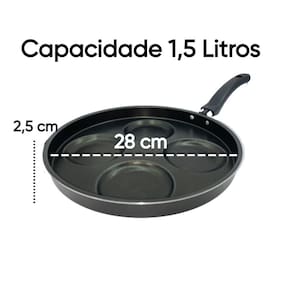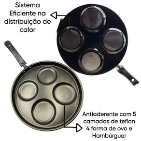 A Arte de Misturas Sabores... Cozinhar é a arte de misturar sabores e encantar, é na cozinha que a mágica acontece, que os amigos se reúnem, que as alegrias se multiplicam... Beleza, charme, praticidade na hora de cozinhar, você vai se encantar, sua cozinha merece esse mimo! Frigideira 4 ovos e Hamburguer 28 cm Antiaderente, item indispensável na sua cozinha, produzido com alumínio de alta qualidade, espessura de 1,1 mm, peça com maior resistência e durabilidade, alumínio que distribui melhor o calor, proporcionando um cozimento mais rápido e uniforme do alimento, Frigideira Revestida com 5 camadas de antiaderente TEFLON (DuPont) - PFOA Free, internamente e externamente, evitando que o alimento grude na superfície, o que facilita no preparo dos alimentos e proporciona praticidade no momento da limpeza. Possui cabo reforçado ergonômico, feito em baquelite, material antitérmico que não retém calor, para garantir facilidade e máxima segurança no manuseio. Especificações Técnicas: Dimensões aproximadas - cm: (A x L x C - capacidade): - 1 Frigideira 4 Ovos 28 cm Antiaderente – 2,5 x 28 x 40 cm – 1,5 L - 1 Espátula de Nylon Material: Alumínio Revestido Revestimento Externo: Antiaderente Revestimento Interno: Antiaderente Espessura Material: 1,1mm Cabo: Baquelite Tampa: Não Peso: 290 g Dimensões Embalagem – cm (A x L x C): 9 x 26 x 35 cm Peso Embalagem - Caixa Parda: 120 g Recomendações: Antes do primeiro uso é necessário realizar a limpeza e a cura do item, imprescindível para durabilidade e proteção da camada antiaderente. Lave com esponja macia e detergente neutro, seque-a com um pano limpo. Unte a parte interna com óleo ou outra gordura e leve-a ao fogo baixo por 2 minuto. Deixe-a esfriar, lave, enxugue e está pronta para utilizar. Cuidados: - Para conservação e durabilidade do seu produto lavar somente om lado macio da esponja; - Evite a imersão do produto quente em água fria. Sempre o deixe esfriar antes de lavar; - Para mexer os alimentos use somente utensílios de silicone ou nylon; - Não exponha as alças e cabos diretamente ao fogo ou fonte de calor prolongado; - Não pode ser levada ao forno e/ou microondas; - Mantenha o produto sobre a chama do fogão apenas o necessário para o cozimento, sempre em fogo baixo ou médio (nunca superior a 350°C). Detalhes: - Garantia 30 dias contra defeitos de fabricação. - Itens decorativos não acompanham o produto. Imagens meramente ilustrativas - Para descarte dos produtos e embalagens siga as orientações de reciclagem vigente. Estamos à disposição para qualquer dúvida. Agradecemos a sua visita e aguardamos seu pedido! Atenciosamente Equipe Mandacaru & Varejo