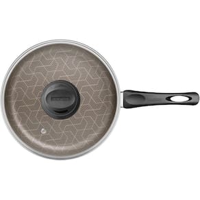 Frigideira Tramontina Antiaderente Paris Tampa 24Cm VermelhoA Linha Paris agora teve seu design remanejado e apresenta estampas internas que vão deixar a sua cozinha ainda mais completa. O toque que faltava agora chegou com o relançamento desta Linha que já é querida por muitos. Mas pode ficar tranquilo que a qualidade permanece, afinal, a Tramontina sabe muito bem o que você precisa em sua cozinha Além disso, suas alças e pegadores permanecem feitos em material antitérmico, com o clássico conforto e a segurança no momento de manuseio dos itens.Perfeita para quem gosta de preparar receitas deliciosas com a família e amigos, as peças são acompanhadas de um revestimento antiaderente que deixa o cozimento dos alimentos e a higienização da sua frigideira muito mais simples. Lembre-se que para manter a qualidade do produto é necessário evitar objetos metálicos, sempre preferindo utensílios de silicone, nylon ou madeira.Características:Marca: TramontinaCódigo do Fabricante: 28505724Linha: ParisCor: VermelhoMaterial: AlumínioMaterial do Cabo: BaqueliteAntiaderente: SimEspessura: 1,8mmCapacidade: 2LDiâmetro: 24cmFogões Compatíveis: Gás, elétrico e vitrocerâmicoCompatível com Lava-louças: SimMaterial da Tampa: Vidro temperadoSaída de Vapor: Sim