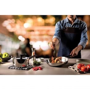 - Praticidade é a palavra-chave da frigideira Grano Baquelite. - Além de ser produzida com corpo triplo, que garante um cozimento mais rápido dos alimentos, seu desenho sem cantos torna sua limpeza muito mais fácil. - Produzida com corpo triplo (aço inox + alumínio + aço inox), que garante um cozimento mais rápido dos alimentos, seu desenho sem cantos torna sua limpeza muito mais fácil. - Pegador em baquelite, não aquece, com protetor de chamas, evitando que queimem quando a chama não estiver centralizada no fundo da frigideira.- A frigideira tem design moderno e acabamento em alto brilho que permite ser levada à mesa. - Pode ser lavada diariamente na máquina de lavar louças.- Foto meramente ilustrativa.