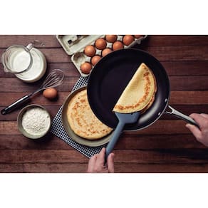 Antes de usar a frigideira pela primeira vez, remova eventuais etiquetas e lave-a. Em seguida, unte a superfície com óleo e aqueça a frigideira, em fogo baixo, por 2 a 3 minutos, dependendo do tamanho da frigideira. Espere esfriar e lave-a com esponja e detergente neutro em água morna. Após, enxágue-a.