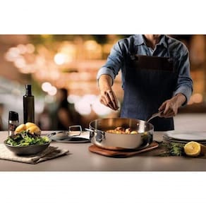Com a Frigideira Tramontina em Aço Inox com Corpo Triplo com Tampa 30 cm de diâmetro 5,6 L da linha Grano você alia praticidade, estilo, bom gosto e beleza na hora de preparar os alimentos para você e sua família. Seu fundo triplo (aço inox + alumínio + aço inox), possui tecnologia que proporciona cozimento mais rápido e uniforme dos alimentos e contribui para que permaneçam quentinhos por muito mais tempo. Com seu design diferenciado totalmente em aço inox que não solta resíduos e seu acabamento em alto brilho pode ser levada à mesa, além de deixar sua cozinha muito mais bonita. Possui tampa com encaixe perfeito e pode ser utilizado em fogões a gás, elétrico, vitrocerâmico e indução, bem como ser levado à máquina de lavar diariamente sem comprometer sua eficiência e qualidade. É muito mais economia, saúde, tecnologia e lindos momentos para você e sua família.
