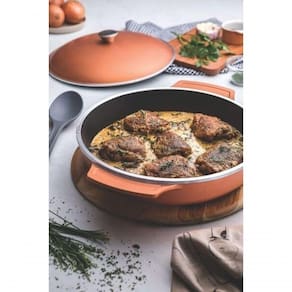 - Corpo de alumínio forjado com espessura de 8 mm;- Tampa de alumínio com espessura de 4,5 mm;- Revestimento interno de antiaderente Starflon High Performance;- Revestimento externo de silicone;- Alças em alumínio forjado e pegador de aço inox;- Pode ir à máquina de lavar louças, porém, para maior durabilidade do produto, indicamos lavar manualmente.Foto meramente ilustrativa.
