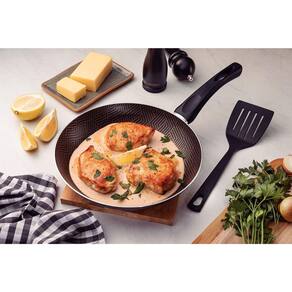 Frigideira Tramontina Paris 22cm 1,0L Antiaderente Starflon Max Cinza com Espátula de Nylon Tramontina - Frigideira Tramontina Paris em Alumínio com Revestimento Interno e Externo em Antiaderente Starflon Max Cinza com Espátula de Nylon 22 cm 1,0 L Com a frigideira Tramontina Paris em alumínio com revestimento interno e externo em antiaderente Starflon Max Cinza com espátula de nylon 22 centímetros 1,0 litro você tem um produto com a qualidade Tramontina e que vai garantir maior praticidade. Produzida em alumínio com espessura de 1,8 milímetros e revestimento interno e externo de antiaderente Starflon Max, ela proporciona um cozimento rápido e uniforme dos alimentos, evita que eles grudem em sua superfície e a torna muito mais fácil de limpar. Seu cabo em baquelite antitérmico, não aquece e oferece maior segurança durante o manuseio. Utilize a frigideira Tramontina e descubra essa experiência prazerosa Corpo de alumínio com espessura de 1,8 mm que proporciona cozimento rápido e uniforme. Revestimento interno e externo de antiaderente Starflon Max que não gruda, é fácil de limpar, mais durável e não é prejudicial à saúde, pois é livre de PFOA. Cabo de baquelite antitérmico que oferece segurança durante o manuseio.Espátula de Nylon que permite uso em temperaturas de até 180 C e cabo com furo passante possibilitando que seja pendurado na sua cozinha.Podem ir à máquina de lavar louças facilitando seu dia a dia. Cuidados com o produto A capacidade volumétrica máxima para cozimento é de 3/4 da capacidade total da peça. Posicione o cabo do utensílio voltado ao centro do fogão. Em fogões com grade, centralize a peça sobre a chama ou fonte de calor e alinhe o cabo com a grade. Utensílios quentes devem estar fora do alcance das crianças. Antes do primeiro uso, lave com esponja macia, sabão neutro ou detergente líquido. Depois de secar, unte a área interna com óleo ou gordura e leve ao fogo por um ou dois minutos. Deixe esfriar e lave novamente. Seu utensílio Starflon está pronto para uso com ou sem gordura, sempre em fogo baixo ou médio nunca superior a 260 ºC . Para mexer os alimentos use somente utensílios de silicone, nylon ou madeira. Com o uso, o cabo pode afrouxar devido à dilatação normal dos materiais. Reaperte apenas o suficiente, sem forçar. Limpeza: Evite a imersão do utensílio quente em água fria. Nunca utilize produtos abrasivos na lavagem. Se deixar queimar alimentos, umedeça a área e até que possa remover os resíduos grudados com esponja e sabão. Para descarte dos produtos e embalagem siga as orientações de reciclagem vigentes. 90 dias para vícios ou defeitos de fabricação. Características Gerais do Produto: : 3 meses Contra defeitos de fabricação