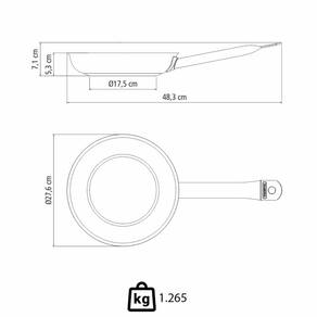 - Seu formato possibilita um preparo ágil e rápido, contando também com o fundo triplo (aço inox + alumínio + aço inox) que distribui o calor uniformemente pela frigideira.