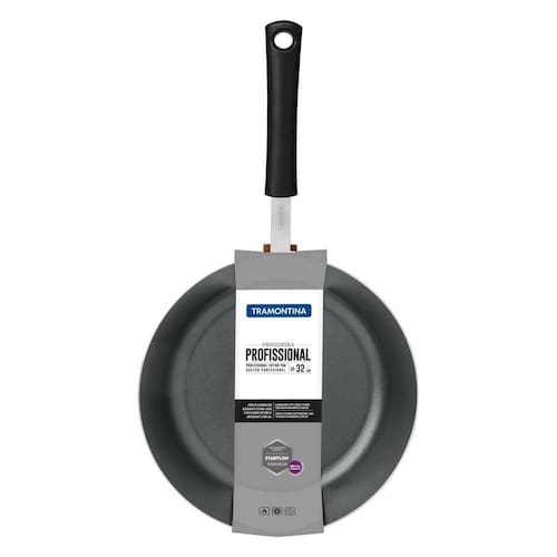 Frigideira Tramontina Profissional Em Aluminio Acabamento Externo Lixado Com Revestimento Interno Antiaderente Starflon Frigideira Tramontina Profissional em Alumínio Acabamento Externo Lixado com Revestimento Interno Antiaderente Starflon T3 Cabo Baquelite 32 cm 4,9 L Suas melhores receitas serão produzidas na Frigideira Tramontina Profissional em Alumínio Acabamento Externo Lixado com Revestimento Interno Antiaderente Starflon T3 Cabo Baquelite 32 cm de diâmetro 4,9 L. Ideal para saltear e fritar iscar, ela garante preparos práticos para o dia a dia de uma cozinha que exige produtos de alta performance. Produzida em alumínio com acabamento externo lixado, que garante a elegância da cozinha, contando com o revestimento interno antiaderente Starflon T3 que possui maior poder de antiaderência, maior resistência a abrasão, maior durabilidade, maior facilidade na limpeza e livre de PFOA. Graças ao seu cabo de baquelite antitérmico, é possível contar com uma frigideira que oferece um manuseio seguro e confortável, pois não aquece. Com a linha de Frigideiras Profissionais da Tramontina você fará bonito em todas as receitas.
