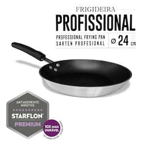 Frigideira Tramontina Profissional em Alumínio com Revestimento Interno Antiaderente Starflon Premium Detalhes do produtoA frigideira Tramontina Profissional em alumínio com revestimento interno antiaderente Starflon Premium e acabamento externo lixado 24 centímetros de diâmetro 1,3 litros é a opção ideal para completar a cozinha do seu restaurante e caprichar no preparo dos pratos para seus clientes. Com ela, você...Ler maisInformações GeraisCorpo de alumínio com espessura de 3 mm que proporciona cozimento rápido e uniforme. Revestimento interno de antiaderente Starflon Premium que não gruda, é fácil de limpar, mais durável e não é prejudicial à saúde, pois é livre de PFOA. Acabamento externo lixado. Cabo de aço inox e baquelite. Maior resistência antitérmica. Sistema de fixação do cabo com 3 rebites. Maior segurança e estabilidade durante o uso.
