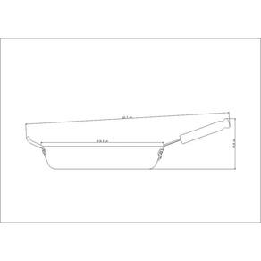 Corpo de alumínio com acabamento externo lixado. Espessura da peça de 2 mm: distribuição uniforme do calor. Revestimento interno de antiaderente Starflon T3. O único com a tecnologia T: maior poder de antiaderência; maior resistência à abrasão; maior durabilidade; mais fácil para limpar e livre de PFOA, garantindo uma resistência à abrasão mais de 15.000 ciclos baseado na Norma ABNT NBR 15321:2013. Cabo e alça de aço inox e baquelite. Maior resistência antitérmica. Sistema de fixação do cabo com 3 rebites. Maior segurança e estabilidade durante o uso. Alça de aço cromado.