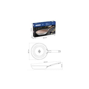 Corpo de aço inox alumínio. Com espessura de 2,7 mm de alumínio e 0,6 mm de aço inox. Revestimento interno cerâmico antiaderente e acabamento externo polido. Tecnologia Biply, dupla camada metálica: aço inox alumínio para uma uniforme do calor e rápido cozimento! Pode ser utilizada nos fogões: gás, elétrico, vitrocerâmico - resistência elétrica e indução. Frigideira Tramontina Romagna em Alumínio com Revestimento Interno Cerâmico e Externo em Inox Polido Marfim 25 cm