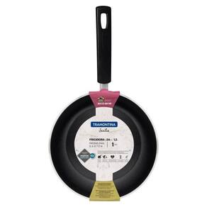 Frigideira Tramontina Sicília Antiaderente Avelã 24cm A frigideira Tramontina Sicília em alumínio com revestimento interno e externo em antiaderente Starflon Excellent avelã 24 centímetros de diâmetro 1,2 litros é a escolha perfeita para preparar deliciosas receitas e agregar maior qualidade para sua rotina na cozinha. Desenvolvida com corpo em alumínio com espessura de 3 milímetros, ela ainda conta com revestimento interno e externo de antiaderente Starflon Excellent. Devido a essas características, ela proporciona o cozimento dos alimentos de maneira uniforme, evita que eles grudem em sua superfície, a tornam fácil de limpar, mais durável e não prejudicial a saúde. Seu cabo é em baquelite antitérmico e oferece maior segurança durante o manuseio, pois não aquece. Ela ainda pode ir à máquina de lavar louças e vai facilitar sua rotina na cozinha! Recomendações de Uso: A capacidade volumétrica máxima para cozimento é de 3/4 da capacidade total da peça.Posicione o cabo do utensílio voltado ao centro do fogão.Em fogões com grade, centralize a peça e alinhe o cabo com a grade.Utensílios quentes devem estar fora do alcance das crianças.Este produto não pode sofrer modificações.Antes do primeiro uso, lave com esponja macia, sabão neutro ou detergente líquido.Depois de secar, unte a área interna com óleo ou gordura e leve ao fogo por um ou dois minutos. Deixe esfriar e lave novamente.Seu utensílio Starflon está pronto para uso com ou sem gordura, sempre em fogo baixo ou médio (nunca superior a 260C).Para mexer os alimentos use somente utensílios de silicone, nylon ou madeira.Limpeza: Evite a imersão do utensílio quente em água fria.Nunca utilize produtos abrasivos na lavagem.Se deixar queimar alimentos, umedeça a área e reserve até que possa remover os resíduos grudados com esponja e sabão.Para descarte do produto e embalagem siga as orientações de reciclagem vigentes.Este produto não necessita de manutenção, apenas limpeza. Informações Adicionais: