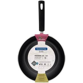 Frigideira Tramontina Sicília Antiaderente Avelã 28cm Leve alta qualidade e beleza para sua cozinha, com a frigideira Tramontina Sicília em alumínio com revestimento interno e externo em antiaderente Starflon Excellent avelã 28 dentímetros de diâmetro 2 litros. Produzida em alumínio com revestimento interno e externo em antiaderente Starflon Excellent, ela garante o cozimento rápido dos alimentos, evita que eles grudem em superfície e devido a isso, é também muito mais fácil de limpar. Seu cabo é em baquelite antitérmico, material que não aquece e proporciona um manuseio muito mais seguro e confortável. Garanta já a sua e leve maior durabilidade e praticidade para a hora de preparar suas refeições! Recomendações de Uso: A capacidade volumétrica máxima para cozimento é de 3/4 da capacidade total da peça.Posicione o cabo do utensílio voltado ao centro do fogão.Em fogões com grade, centralize a peça e alinhe o cabo com a grade.Utensílios quentes devem estar fora do alcance das crianças.Este produto não pode sofrer modificações.Antes do primeiro uso, lave com esponja macia, sabão neutro ou detergente líquido.Depois de secar, unte a área interna com óleo ou gordura e leve ao fogo por um ou dois minutos. Deixe esfriar e lave novamente.Seu utensílio Starflon está pronto para uso com ou sem gordura, sempre em fogo baixo ou médio (nunca superior a 260C).Para mexer os alimentos use somente utensílios de silicone, nylon ou madeira.Limpeza: Evite a imersão do utensílio quente em água fria.Nunca utilize produtos abrasivos na lavagem.Se deixar queimar alimentos, umedeça a área e reserve até que possa remover os resíduos grudados com esponja e sabão.Para descarte do produto e embalagem siga as orientações de reciclagem vigentes.Este produto não necessita de manutenção, apenas limpeza. Informações Adicionais: