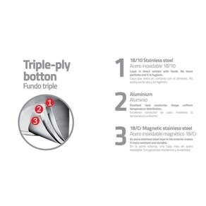A Tramontina traz a melhor companhia para você realizar suas melhores receitas. Com a Frigideira Tramontina Ventura em Aço Inox com Revestimento Interno Antiaderente Starflon Premium 20 cm de diâmetro 1,3 L é a melhor opção para elevar o nível de suas receitas. Apresenta ainda tecnologia de fundo triplo (aço inox + alumínio + aço inox), inovação na cozinha que distribui o calor de forma uniforme cozinhando mais rápido os alimentos. E o melhor: gastando menos energia! Tem 20 cm de diâmetro e seu formato funcional é perfeito para a preparação dos alimentos. É uma frigideira versátil que pode ser utilizada em diferentes tipos de fogões. Você vai se sentir um verdadeiro profissional! Totalmente feita de aço inox, com revestimento interno de antiaderente Starflon Premium, para tornar a cozinha ainda mais prática, saudável e saborosa. O requinte do aço inox com toda a praticidade e tecnologia do antiaderente Tramontina. O fundo triplo (aço inox + alumínio + aço inox) distribui o calor uniformemente, proporcionando um cozimento mais rápido e uniforme, economizando energia e deixando os alimentos aquecidos por mais tempo. Formato funcional para preparação dos alimentos. Acabamento em alto brilho. Pode ser lavada diariamente na máquina de lavar louças.Pode ser utilizada nos fogões: gás, elétrico, vitrocerâmico e indução. Observações A capacidade volumétrica máxima para cozimento é de 3/4 da capacidade total da peça.Primeiro uso: ao usar a frigideira pela primeira vez, remova eventuais etiquetas, lave-a, seque e unte-a com óleo na parte interna e aqueça em fogo baixo por 2 a 3 minutos, dependendo do tamanho da frigideira. Espere esfriar normalmente, lave-a com espoja e detergente neutro em água norma, enxágue e seque normalmente. Repita o processo de primeiro uso sempre que for feita a lavagem na máquina de lavar louças. Recomenda-se repetir o processo periodicamente para melhor conservação dos revestimentos. Para preservar os revestimentos, não utilize utensílios com pontas metálicas. Para isso recomendamos utilizar apenas utensílios de nylon, silicone, madeira ou bambu para maior durabilidade do revestimento. Características Gerais EAN13 7891116115916 DUN14 17891116115913 NCM 7323.93.00 Peso Líquido 0,5600 kg. Peso Bruto 0,6400 kg. Metragem 0,006875 m³. Dimensões Embalagem (Compr. X Larg. X Alt.) 395x 229x 76 mm. Dimensões Produto (Compr. X Larg. X Alt.) 400x 223x 76 mm. Diâmetro 20,0 cm. Capacidade 1,30 l. Espessura 0,5 mm.