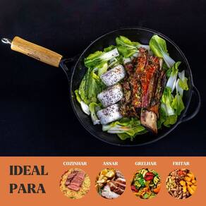 A Frigideira Wok Panela Mineira é ideal para sautear, fritar, selar e preparar receitas orientais e contemporâneas com excelente desempenho térmico. O ferro fundido puro distribui o calor de forma uniforme, garantindo cocção perfeita e rápida. O cabo de madeira proporciona conforto e segurança no manuseio, enquanto a tampa de vidro permite acompanhar o preparo sem perder vapor. Diferente de panelas comuns, as peças de ferro fundido Panela Mineira são livres de toxinas, duram por gerações e liberam ferro naturalmente. Ideal para bares, hotéis, pousadas, restaurantes, buffets e também para o uso diário em casa. Produto com garantia de 90 dias do fabricante.