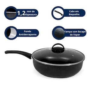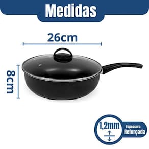 01 Wok Preta 26cm com tampa de vidro
