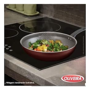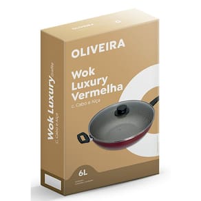 1 Frigideira Wok Luxury com Cabo e Tampa 6L N32 Vermelha E1775 - Oliveira