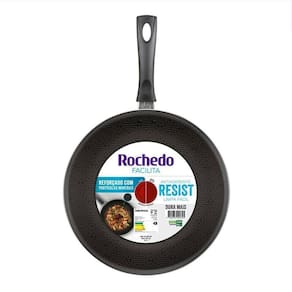 Frigideira Wok Rochedo Facilita 28cm Vermelho Vermelho Linha Rochedo Facilita, com antiaderente Resist Limpa facil, reforcado com particulas minerais: Dura mais. Com a Frigideira Wok Rochedo Facilita Vermelha 28cm, voce facilita seu dia a dia, com design moderno na cor vermelha, e o item ideal para sua cozinha. Conheca todos os diferenciais dessa linha: Antiaderente Resist: Limpa facil e dura mais, reforcado com particulas minerais. Thermo-Sinal: Muda de cor indicando o momento ideal para selar o seu alimento. Base Limpa Facil: Nao mancha, nao gruda e e facil de limpar. Cabos reforcados: mais seguranca e conforto. Alem de contar com a qualidade da marca Rochedo, presente no Brasil ha mais de 100 anos, a Frigideira Wok Rochedo Facilita Vermelha 28cm e livre de substancias toxicas (PFOA), garantindo a seguranca no uso dos produtos. Pode ir em todos os tipos de fogoes, exceto inducao, compativel com maquina de lavar loucas. Especificacao tecnica: Modelo: Facilita. Cor: Vermelho. Tipo de material: Aluminio. Fontes de calor: Todos, exceto inducao. Conteudo da embalagem: 1 Frigideira Wok 28cm.