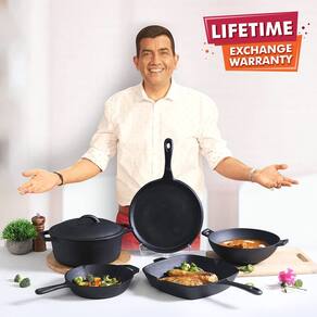 Frigideira de ferro fundido Wonderchef Forza pré-temperada de 19 cm | Preto pequeno preto