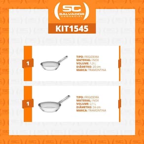 Muito importante:-- conferir produtos no ato do recebimento. Não aceitar produtos com embalagem violada amassado, rasgado, aberto, quebrado, etc , a recusa deve ser feita no ato.Conjunto de frigideiras allegra inox 2 peças fundo triplo 20 e 24 cm - tramontinaComponentes do kit:- 1 frigideira allegra aço inox fundo triplo fogões de indução 20 cm 1,3l - tramontina 62666201- 1 frigideira allegra aço inox fundo triplo fogões de indução 24 cm 2,1l - tramontina 62666241Frigideira allegra aço inox fundo triplo fogões de indução 20 cm 1,3l - tramontina 62666201:Informações adicionais:- tipo: frigideira- material: aço inox- litragem: 1,3l- linha: allegra- possui revestimento NãoMedidas do produto:- total base ao cabo : 6,8 cm a x 22,4 cm l x 39,9 cm p- embalado: 10 cm a x 25 cm l x 36 cm p- diâmetro interno: 20 cm- diâmetro externo: 22,4 cm- diâmetro base: 15 cm- peso líquido: 0,60 kg- peso bruto: 0,75 kgFrigideira allegra aço inox fundo triplo fogões de indução 24 cm 2,1l - tramontina 62666241:Informações adicionais:- tipo: frigideira- material: aço inox- litragem: 2,1l- linha: allegra- possui revestimento NãoMedidas do produto:- total base ao cabo : 7,7 cm a x 26,7 cm l x 44,2 cm p- embalado: 9 cm a x 27 cm l x 45 cm p- diâmetro interno: 4 cm- diâmetro externo: 26,7 cm- diâmetro base: 18,5 cm- peso líquido: 0,80 kg- peso bruto: 0,98 kgPerguntas frequentes:- pode ir na máquina de lavarPode sim.- é compatível com fogões por induçãoSim, perfeitamente compatível. Também poderá utilizar nos modelos: gás, elétrico e vitrocerâmico - resistência elétrica- pode ser levado ao fornoSim, temperatura máxima de 260ºc.Garantia: 90 dias de garantia legal para vícios ou defeitos de fabricação.Certificação: produto com certificação compulsória certificada pela ocp 0104- pcn do brasil, registro 001224/2018, conforme portaria inmetro 419/2012.Tamanho da embalagem: 12cm a x 45cm l x 27cm pPeso: 1,5kg
