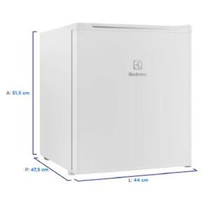Frigobar com 1 porta, 3 prateleiras removíveis, gaveta para legumes/frutas, porta-latas e porta-garrafas. Controle de temperatura ajustável entre -2ºC e 10ºC. Operação silenciosa. Design compacto e moderno. Iluminação interna não especificada. Sistema de refrigeração com distribuição uniforme do frio.Características