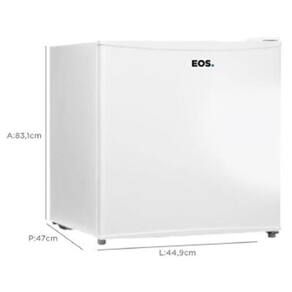 Com dimensões compactas, o Frigobar 47L Eos Classe A - Efb50 - B159169 se adapta facilmente a qualquer espaço. Possui altura de 83,1 cm, largura de 44,9 cm e profundidade de 47 cm. Seu peso é de 21,5 kg.