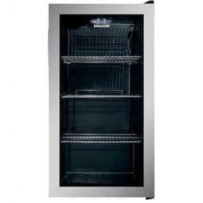 Frigobar 88L, 1 porta, degelo manual, prateleiras removíveis, sistema de refrigeração por compressor, porta em aço inox e vidro integrado, controle de temperatura ajustável.Infelizmente não temos estoque do produto que você está procurando no momento.