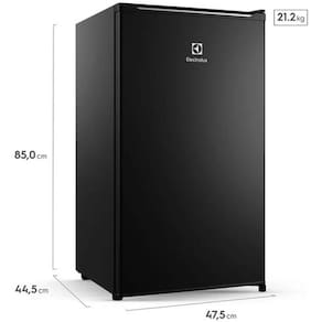 Frigobar Electrolux 90L, cor preta, controle de temperatura ajustável (-2ºC a 10ºC), Espaço Cold Zone, porta reversível, gaveta para frutas e legumes, prateleira de vidro e iluminação LED.Características