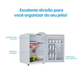 Porta reversível: Adapte o frigobar ao seu espaço com a porta que pode ser montada para abrir de ambos os lados, garantindo total praticidade.