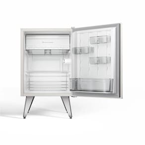 Frigobar Brastemp 76 Litros Classic White Retrô BRA08HB O Frigobar Brastemp Retrô 76 litros transforma qualquer ambiente no seu mundo! O design inconfundível conta com os acabamentos vintage com pés palito, puxadores metálicos e o icônico logo Brastemp dos anos 50. Em 8 opções de cores exclusivas, sejam as clássicas ou as inspiradas nas tendências mais atuais do design, pra você escolher a que representa melhor o seu estilo. Além disso, se surpreenda com a possibilidade de armazenar tudo como você quiser, seja com os compartimentos modulares, cesto cromado ou no freezer - que dá um gelo em qualquer frigobar.