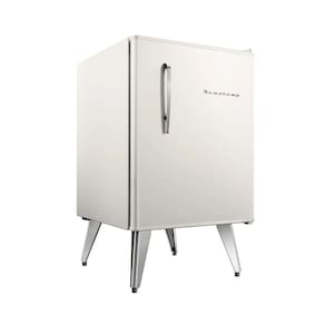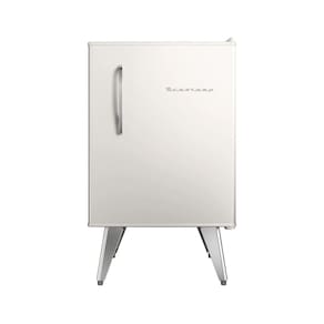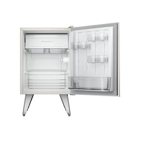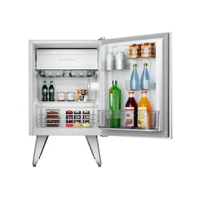 Frigobar Brastemp Retrô 76 litros, design vintage com pés palito e puxadores metálicos. Possui compartimentos modulares, cesto cromado e freezer. Performance de refrigeração eficiente com economia de energia.Vendido e entregue por BRASTEMP