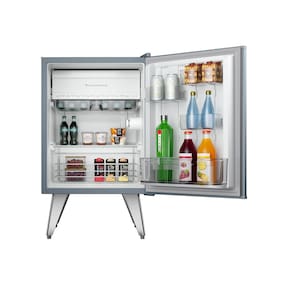 O Frigobar Brastemp Retrô 76 litros com performance de refrigeração eficiente que economiza até 21% de energia elétrica no ano[1], transforma qualquer ambiente no seu mundo! O design inconfundível conta com os acabamentos vintage com pés palito, puxadores metálicos e o icônico logo Brastemp dos anos 50. Em 8 opções de cores exclusivas, sejam as clássicas ou as inspiradas nas tendências mais atuais do design, pra você escolher a que representa melhor o seu estilo. Além disso, se surpreenda com a possibilidade de armazenar tudo como você quiser, seja com os compartimentos modulares, cesto cromado ou no freezer - que dá um gelo em qualquer frigobar.