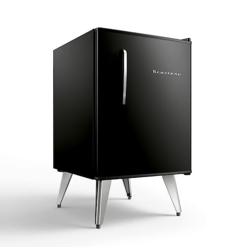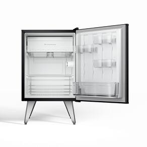Frigobar Brastemp Retro BRA08 76L com design vintage, pés palito, puxadores metálicos, controle de temperatura, compartimento extra frio e cesto multiuso.Vendido e entregue por Multiloja