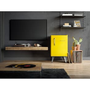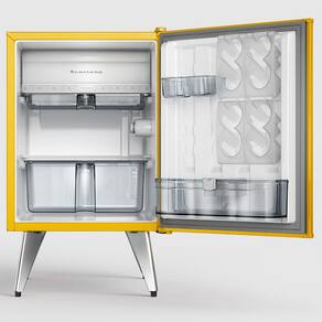 - Congelador (freezer): possibilita a formação de gelo e pode acomodar pequenas embalagens de itens congelados. - Gaveta multiuso: praticidade para armazenar frutas, chocolates, queijos, verduras, etc. - Porta com compartimentos modulares: Ideal para organizar e personalizar o interior do frigobar - Porta-latas para até 8 latas: espaço para até 8 latas, capacidade maior que muitos refrigeradores convencionais. - Separador de garrafas: na prateleira inferior, na porta do frigobar. - Puxador e pés cromados: Mais que um compacto, um objeto de decoração. - Painel de controle: interno - 3 níveis de temperatura no refrigeradorCaracterísticas