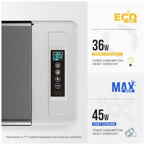 Warranty for your rightsWith CE and FCC certificated, we guarantee you a 2 year warranty for the compressor and all other accessories . If you have any questions, please reach out to BougeRV, we provide 24h friendly customer service. Package included removable partition,dc power cord, ac power cord and user manual Fast Coolingtime and money savingWith Compressor refrigeration technology, this 12 v car freezer could achieve 16 min fast cooling from 77 to 32 and 50 min from 77 to 5, keeping your food fresh. No ice needed, no food spoided, money and space saving. Demension22.6812.6015.5in, Weight 22.8lb lightweight ECO mode energy efficencyWith ECO energy saving mode, this 30 Quart car fridges operating power is less than 45W. Even running on MAX mode, it comsumes far less than 1kwh, day for its intelligent cycle work. You can run this car fridge with 12, 24 V DC power on various vehicles, such as SUV, Truck, RV, Camper, Jeep, Van, Boat, etc. Low Noise quiet sleepThe truck freezer is designed 45dB low noise to make sure you a good sleep after a long driving. This camping fridge also has a shock proof design to face the uneven road, operating with no problem in case of a 30 inclination when your are off road. 3 Level Voltage protect your carThe RV fridge, freezer is equipped with a 3 level battery monitor to prevent the fridge from draining your vehicles battery. You can choose at what battery voltage the fridge shuts off to prevent complete battery drain.