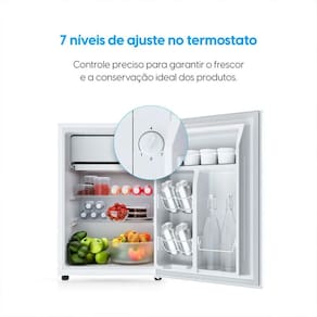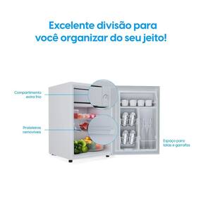 Frigobar com porta reversível, compartimento extra frio e compartimento para latas.Infelizmente não temos estoque do produto que você está procurando no momento.