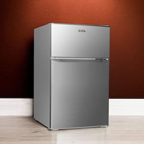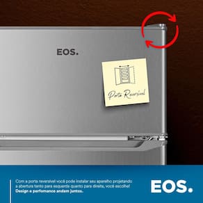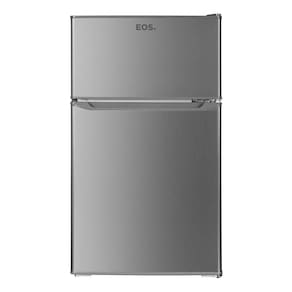 Frigobar EOS 88 Litros Duplex Inox com freezer, prateleiras de vidro ajustáveis, porta reversível e gás ecológico R600a.Características