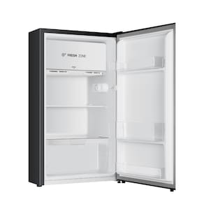 Frigobar Hisense com 90 litros, porta reversível, termostato ajustável e pés ajustáveis.Características